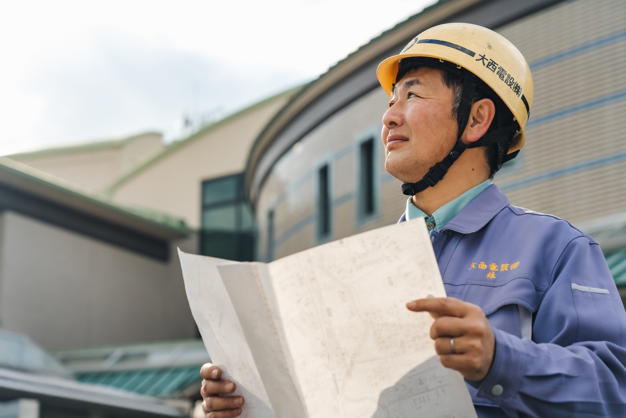 地域に貢献できること、自分の仕事が形になり残ること。そのやりがいは大きなものです。『大西電設株式会社』で、誇りある仕事をともにしませんか?